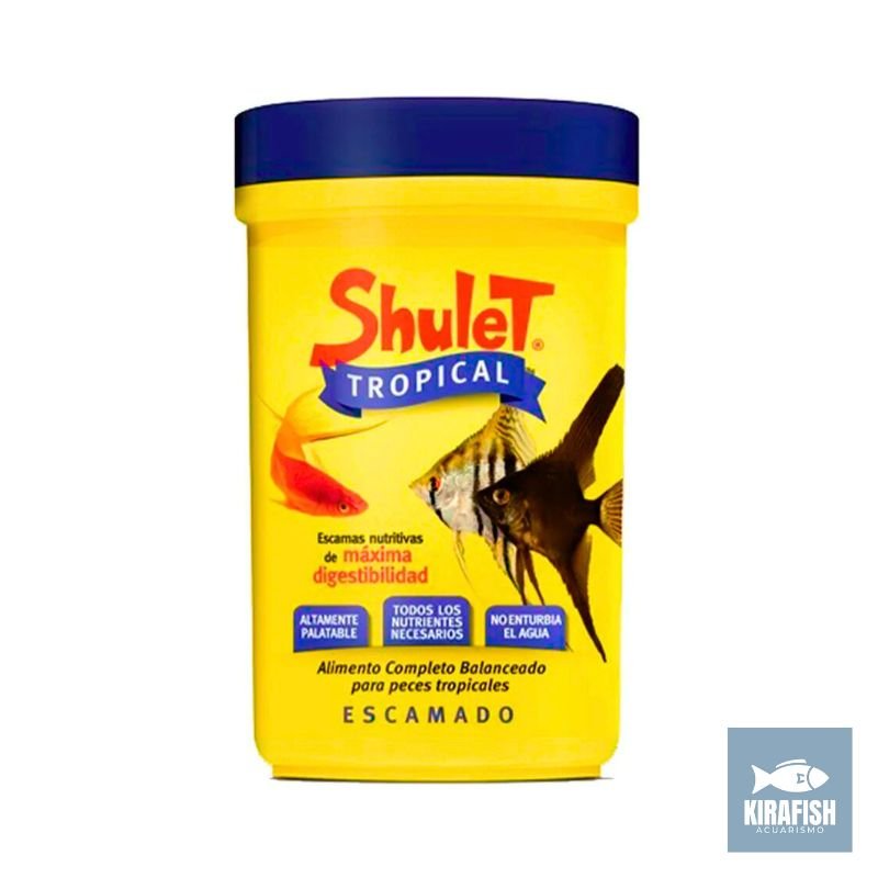 Shulet Tropical es un alimento desarrollado para cubrir las necesidades nutricionales de peces tropicales de agua dulce, comúnmente presentes en acuarios comunitarios. Su fórmula equilibrada aporta los nutrientes esenciales necesarios para mantener peces activos, saludables y con un desarrollo adecuado.
